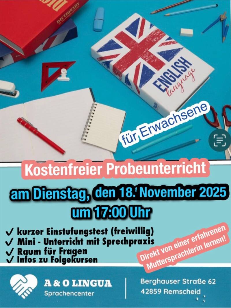 Anmeldungen gerne unter: Telefon: 02191-669680 – Mobil: 0179-9241585 E-Mail: aolingua@t-online.de oder PN über unseren Instagram Account a_und_o_lingua_sprachencenter